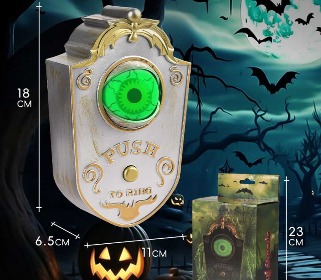- Key Features 👁️ Electric Rotating Eyeball Press the button, and watch the lifelike eyeball spin 180 degrees with a creepy mechanical whirr. Its bloodshot details and glowing green iris (LED-powered) create an unsettlingly realistic illusion, perfect for startling delivery drivers, trick-or-treaters, or even your bravest friends!