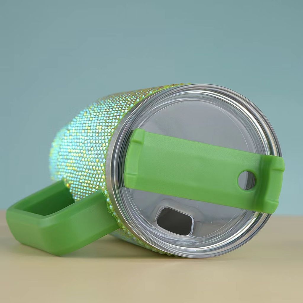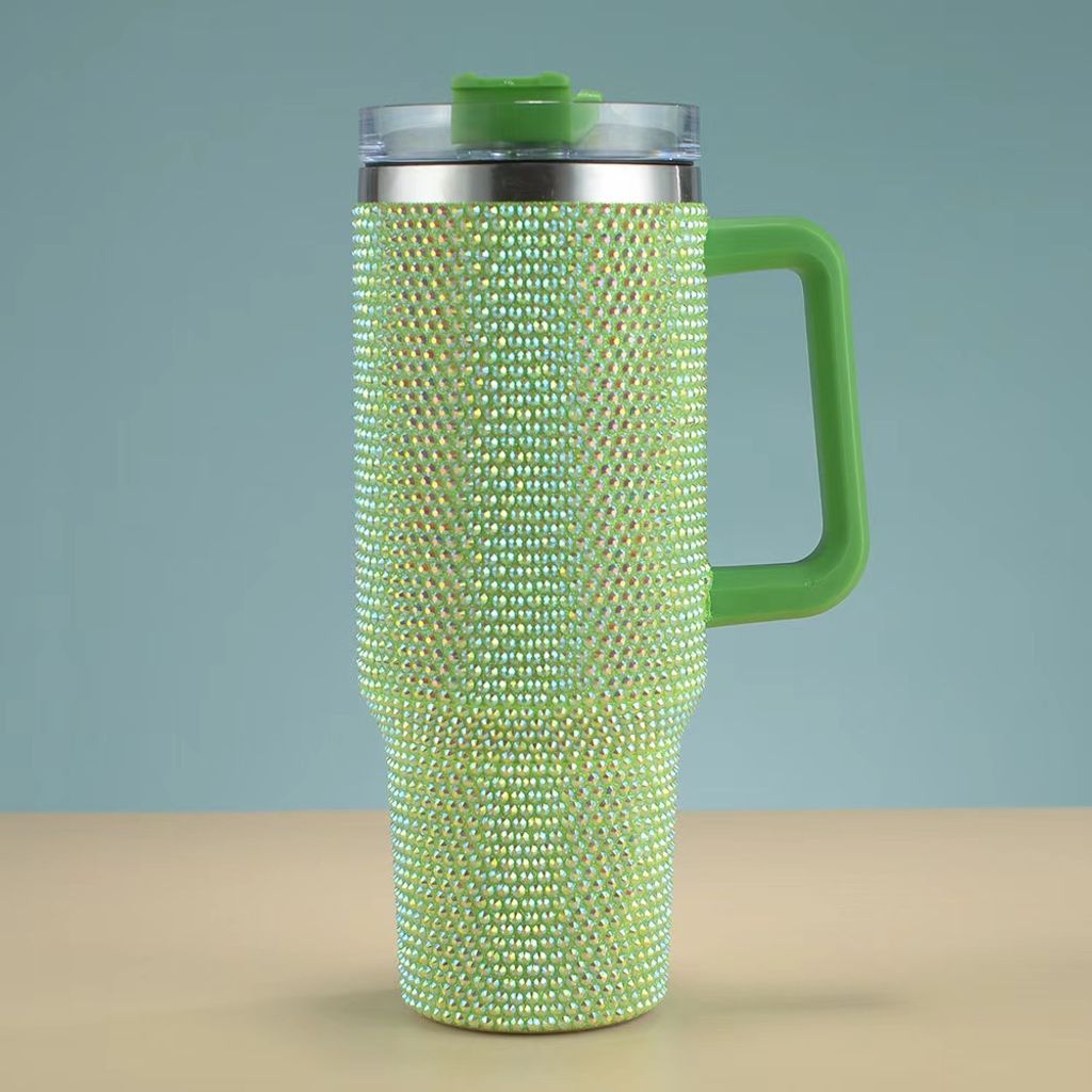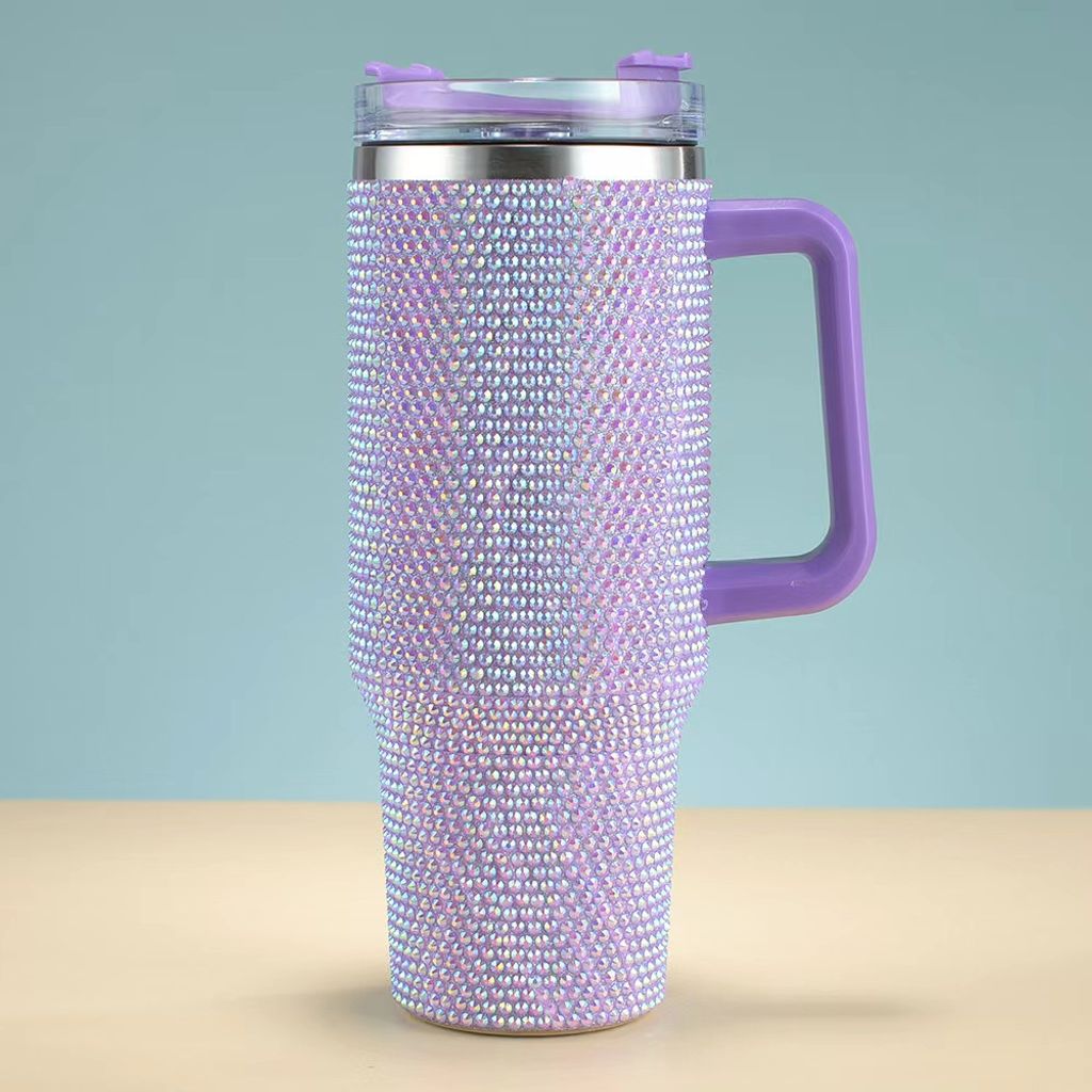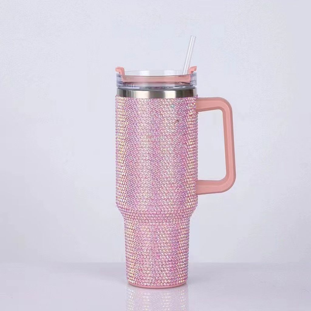 Customized shiny Diamond insulated mug 40oz handle car mug 304 stainless steel straw ice cup car portable insulated mug