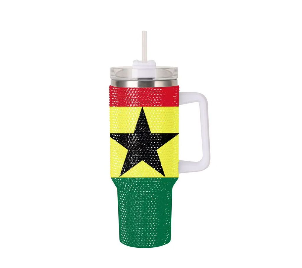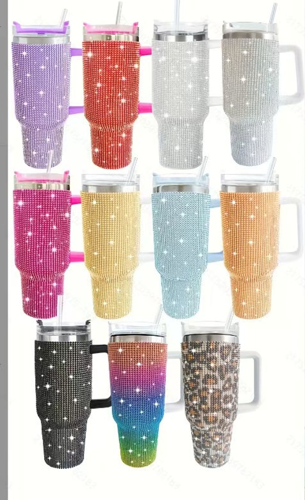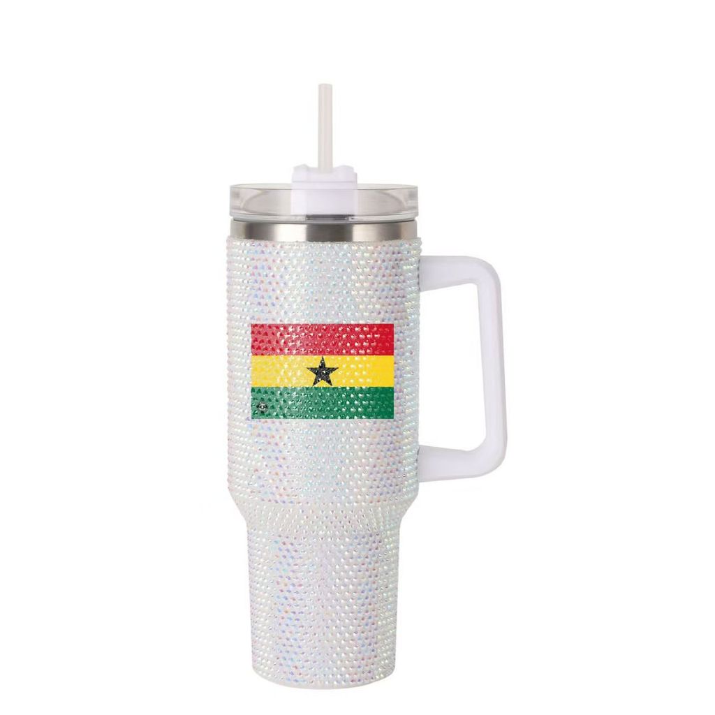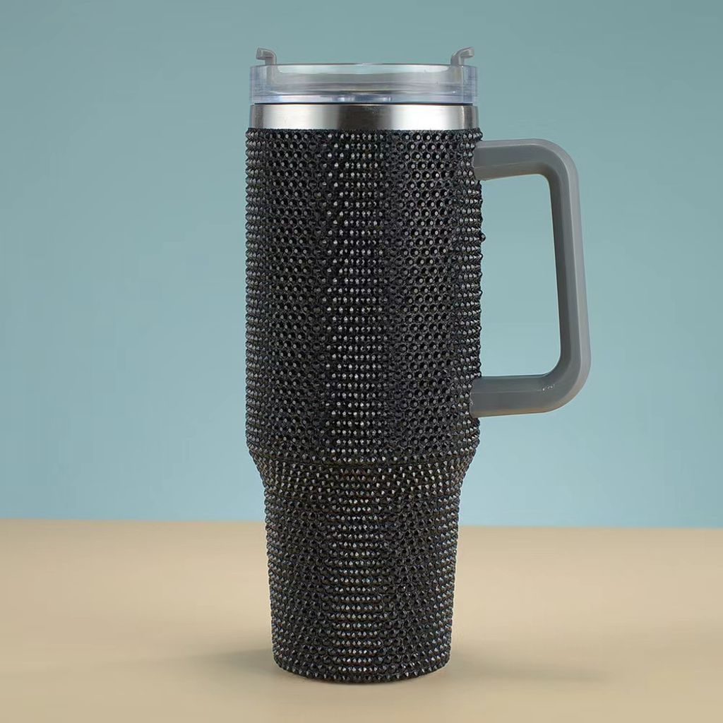 Customized shiny Diamond insulated mug 40oz handle car mug 304 stainless steel straw ice cup car portable insulated mug