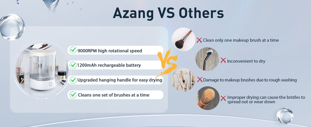 - 【Compatibility with All Size Makeup Brushes】Equipped with an upgraded silicone fixed cover, our cleaner accommodates a diverse range of brush sizes, ensuring a thorough clean for every brush in your collection. The enhanced hanging handle adds convenience, enabling you to hang and air-dry your brushes effortlessly. Note that high-speed spinning drying may cause bristles to splay or fray; thus, we recommend air drying.