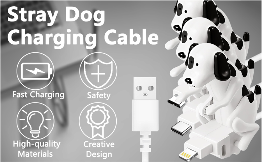 One unit of Funny Dog Charger Cable & USB (Stray Dog Charging Cable, 4 ft USB Type C Charger Cord, Type - c & Apple Cable, White)