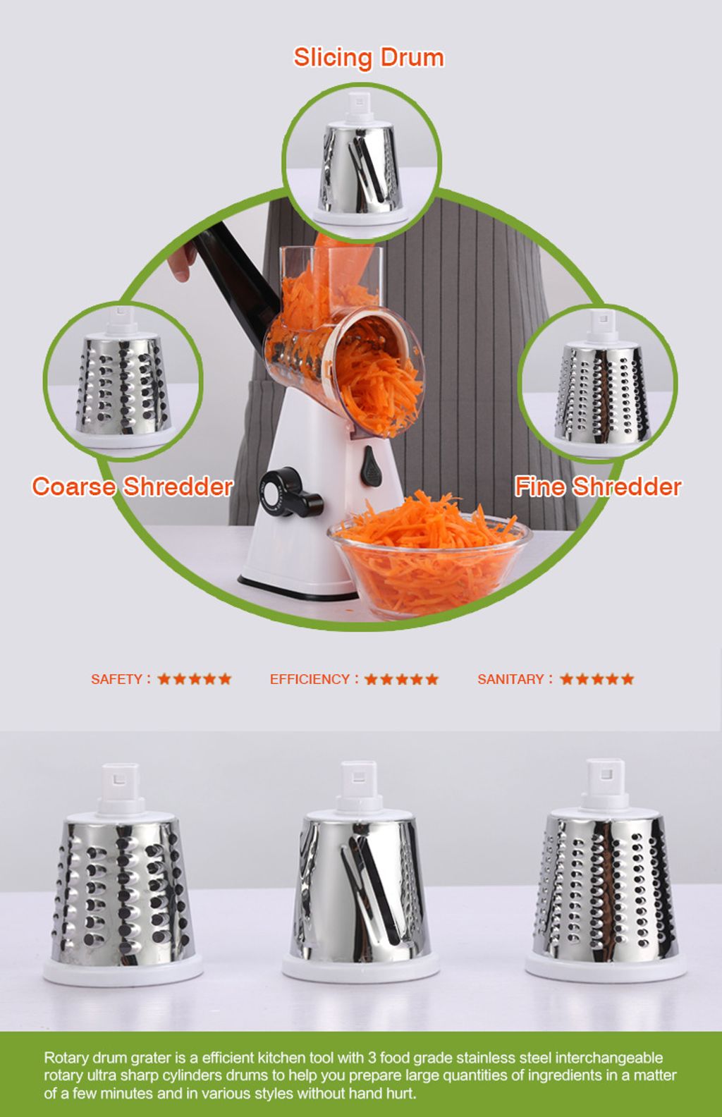 Rotary Cheese Grater with Handle with 5 Well-designed Blades & Strong Suction Base, Mandoline Slicer & Vegetable Grater Rotary for Kitchen
